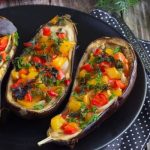 Em seguida, acrescente a berinjela, abobrinha, os pimentões e por último o tomate. Mexa por aproximadamente 5 minutos.
