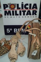 Em sequência através das buscas à PM encontrou o acusado Gabriel Hallyner circulando com uma sacola, onde dentro estavam calçados com a etiqueta da loja.