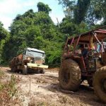O caminhão foi apreendido e o motorista levado para a delegacia por estar transportando madeira sem nota fiscal e documento ambiental (guia florestal para transporte de produtos florestais diversos).
