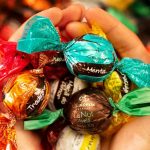 Bombons de chocolate ao leite sortidos nos sabores avelã e brigadeiro. R$ 31,90 preço nacional.