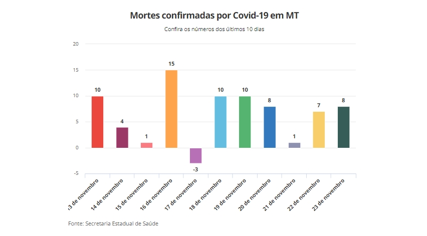 No dia 17 de novembro, a SES corrigiu alguns números, o que impactou na soma diária de casos em MT.