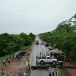 Na BR-163, em Rondonópolis, há manifestação com interdição intermitente de pista. No ponto conhecido como Trevão, os manifestantes estão fazendo bloqueio para veículos de cargas não perecíveis.