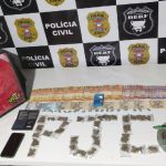 Ele usava a casa da mãe para guardar porções de pasta base de cocaína e maconha. Os investigadores encontraram parte das substâncias enterradas no fundo da residência.D.C.R.L, de 24 anos de idade, foi preso no bairro Dom Osório e autuado em flagrante pelo crime de tráfico de drogas.