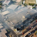 Um incêndio de grandes proporções atingiu na manhã deste sábado (11), um barracão do estacionamento ao lado da igreja Nossa Senhora do Bom Despacho, em frente ao Hospital Estadual Santa Casa, em Cuiabá.