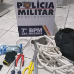O suspeito confessou que tinha mais um outro participante e que as ferramentas que seriam utilizadas no furto estariam em uma propriedade rural na entrada do município de Acorizal.