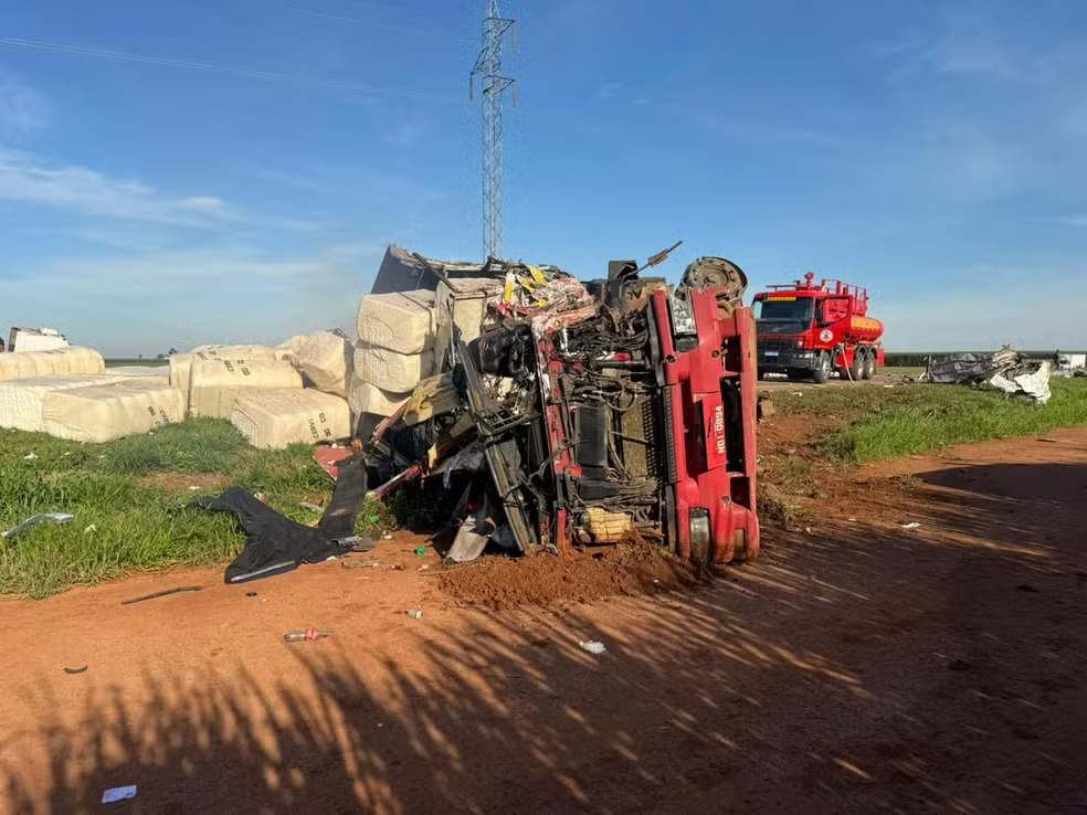Na pista, ficou muito material espalhado dos dois veículos. Os bombeiros foram acionados para molhar os fardos de algodão que ficaram na pista para evitar que o material, altamente inflamável, pegasse fogo.