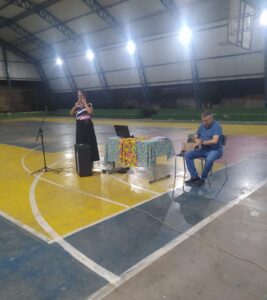 No último dia 03 de abril, em uma emocionante celebração em alusão ao Projeto Cuiabá e aos seus 305 anos de história e cultura, a Escola Marcelina de Campos, na Anexa Nossa Senhora Aparecida, teve a honra de receber presenças ilustres: a Professora e Escritora Jacy Proença e o Cantor, Compositor e Apresentador Pescuma.