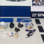 Com a dupla, os militares apreenderam 34 porções de maconha e 22 porções de cocaína. Os policiais também realizaram buscas no carro de um dos suspeitos e apreenderam munições de diversos calibres, balança de precisão e materiais para embalagem das drogas.