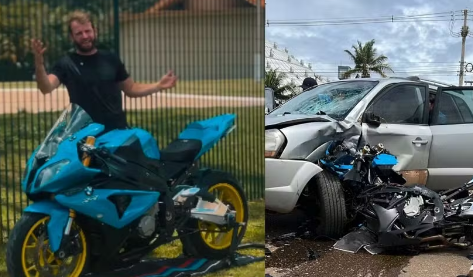 Guilherme Reinheimer, de 24 anos, pilotava uma moto de alta cilindrada, quando bateu em cheio contra a lateral de um carro que entrou na pista.