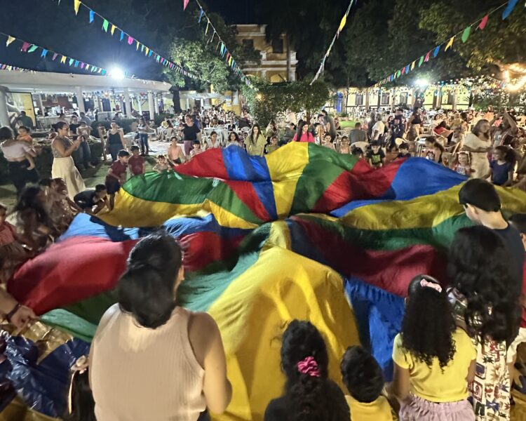 Logo depois, às 18h, é a vez da quadrilha improvisada, convidando todos a participarem da dança típica. Ela celebra a espontaneidade, a alegria e a cultura popular brasileira, sendo inspirada na tradicional dança das festas juninas e valorizando a criatividade e a participação de todos. É um momento de encontro, brincadeira e descontração, onde a tradição se mistura ao humor.