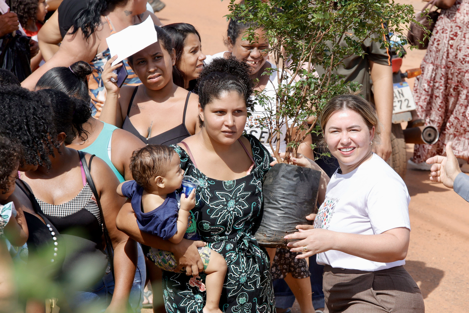 As calçadas e quintais das casas vão ganhar mais verde com a distribuição de 150 mudas de jabuticabeira. Os técnicos da Semma orientaram a população sobre o plantio e manejo correto da muda até que ela cresça e frutifique. A entrada da CMEITI também ganhou uma muda que em breve vai dar frutos para a criançada.